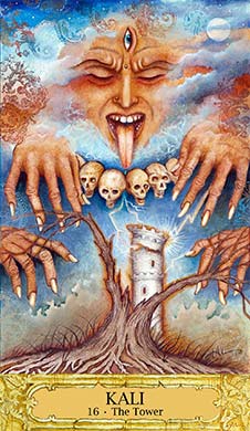 An association of evil with macrocosmic alchemical change does seem appropriate; there must be an agent of objectionable destruction (“solve”). The Hindu goddess Kali (left), for example, personifies in Chrysalis Tarot the cleansing energy of creative destruction as she restores balance to one’s life or the world. In other words, creative destruction appears to be the preferred cosmic procedure to usher in first-order change; examine the last 100 years of world history!